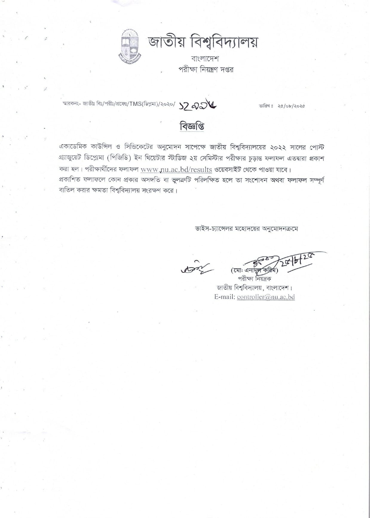 NU PGD in Theatre Studies 2nd Semester Result 2022 Published - Check Now
